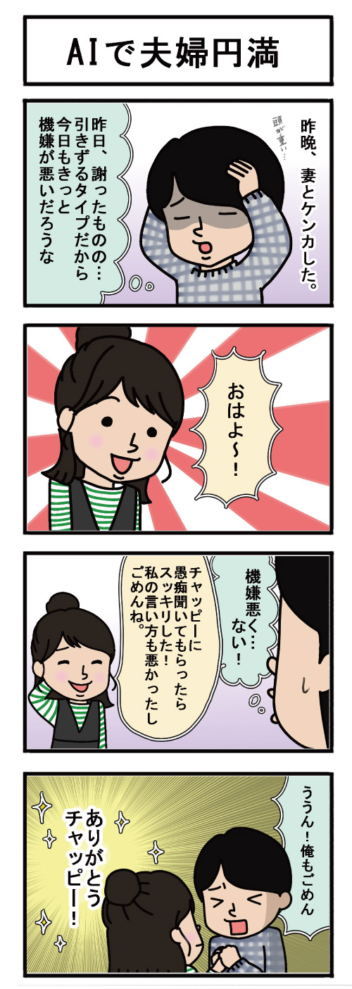 これはAIのよい活用例だと思いました!愚痴を聞いてもらうとか、壁打ちの相手に本当にちょうどいい。友人や家族に言えないことも、気軽に話せて、だんだんと頭が整理されて冷静になれる。頼り切るのではなく上手に活用して、生活をより豊かにしたいですね。