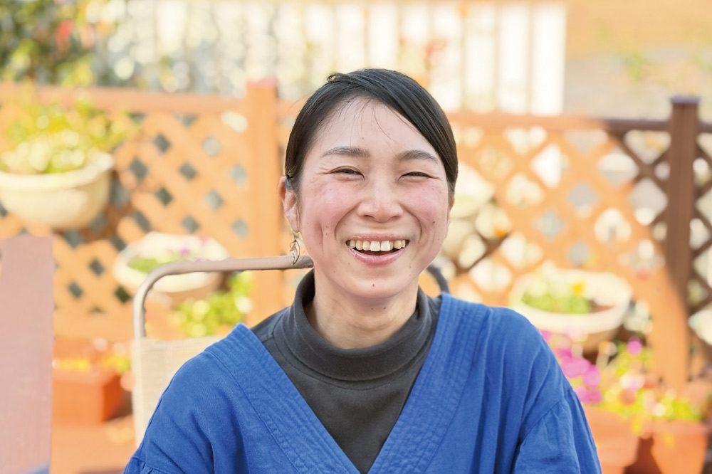取材するにあたって、彼女のインスタを開いてみた。可愛らしい名前があまりにもインパクトがありすぎて「本名?」と一瞬疑ってしまう。早速メッセージを送り取材をオファー。湯布院に住んでいるということで、待ち合わせはちかのさんが選んでくれた、由布岳が目の前に広がるカフェへ。久々の湯布院は快晴で、とても気持ちよかった。店の前で初顔合わせ。「こんにちは」と、えくぼが印象的な可愛らしい笑顔で挨拶をしてくれた。凛とした佇まいの、綺麗な女性だった。