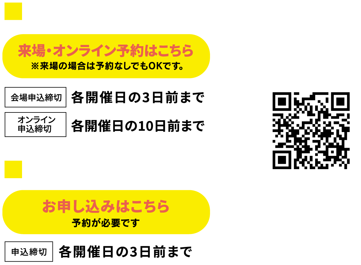 ※予約者多数のため予約なしの当日参加は受付ができかねますことご了承ください。