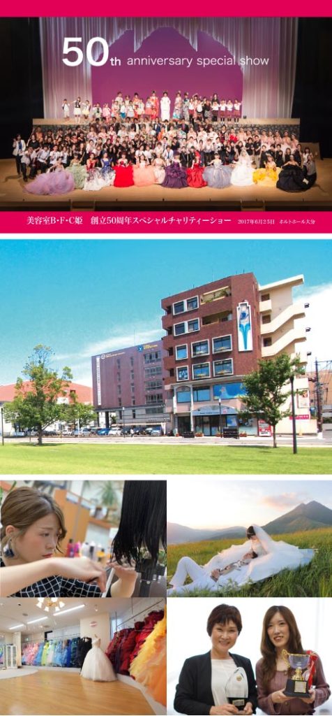 一般美容業、ブライダルメイク・着付(ホテル日航大分オアシスタワー指定店他)、貸衣装、エステサロンを展開。