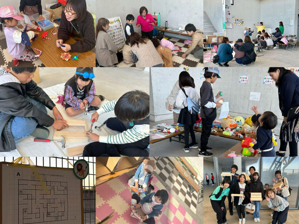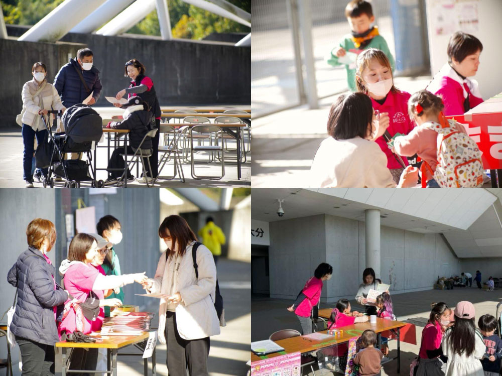 今年はここに!さらに幅広い年代の子どもたち、ママたちにもっとゆっくり楽しんでもらえるようにと、大学生スタッフが考えてくれた「なぞときカード」や、子育て応援ブースでの「親子向けミニ講座『簡単な折り紙で遊ぼう(さんずおりがみさん)』『えいごであそぼ♪ミニレッスン(Mommy子供英語教室さん)』『親子触れ合い・歌あそび(しの&えりさん)』」が企画として加わり、子どもたちが集まり楽しそうな様子と、それを嬉しそうに見守るママやパパの姿に、当日の慌ただしさや疲れも一瞬にして吹き飛ばすことができました!大分の子育てをもっと楽しく!と協力してくださった講師の皆さん、ありがとうございました。
