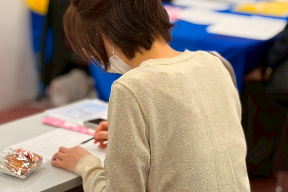 その後、興味を持った企業ブースを訪れ、自己紹介カードを利用しながら要望を企業側に伝えます。興味を持った企業の職場見学を希望する場合は、職場見学会申込票に企業名と希望日を記入し、投函BOXに投函。事務局が企業と希望者をマッチングしてくれ、その後連絡があり、職場見学が可能となります。