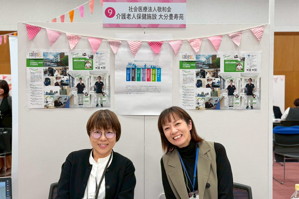 今回初出展しました。人材不足の問題を解消したく、行政の情報をネットで調べていたら「おしごとフェスタ」が目に留まり申し込みました。想像していたよりも来場者が多く、就職アドバイザーの方がいることで、企業と参加者の方を繋いでくれてすごく助かっています。法人全体で就活イベントに参加したことはありますが、介護事業単体で参加するのは初めてです。大きな法人なので安定していますし、介護職に興味のある方なら無資格でも大丈夫です。私も全く違う職種から資格なしで入社しましたが、今は事務長代行のお仕事に就かせていただいています。女性の多い職場で、福利厚生も整っていてとても働きやすい環境です。一緒に働いてくれる方を待っています!